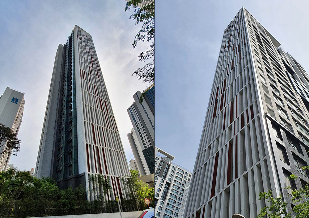 단순 수성페인트 도료만 사용하던 방식에서 벗어나 "커튼월 룩", "세라믹패널", "알루미늄패널", "GFRC" 등 유리나 금속패널을 입면, 측벽, 코어, 장식구조물 일부에 부착하여 화려한 외부를 돋보이게 하는 고급화가 보편적인 방식으로 자리 잡고 있습니다.